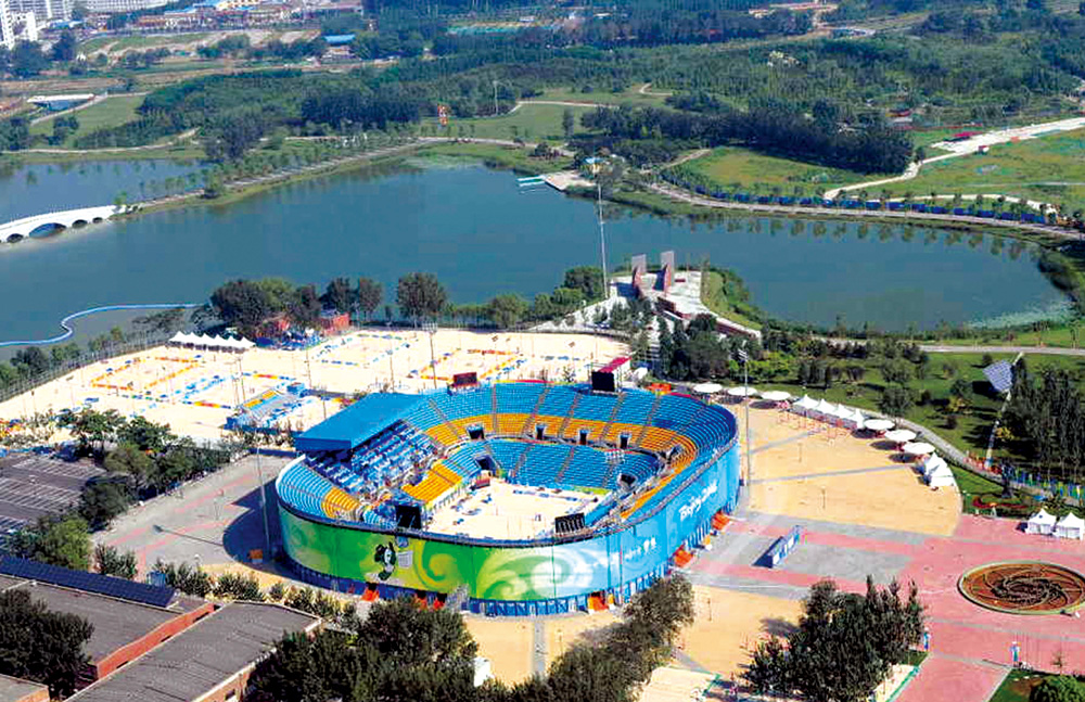 朝陽公園沙灘排球場(chǎng)為2008年北京奧運(yùn)場(chǎng)館工程,位于北京市朝陽區(qū)朝陽公園內(nèi),整個(gè)工程由以下項(xiàng)目組成:一座12000座位的比賽臨時(shí)場(chǎng)館、兩塊熱身場(chǎng)地,其中一塊配200座位的媒體專用席位、六塊訓(xùn)練場(chǎng)地、三座既有建筑物改造工程、室外廣場(chǎng)、道路硬化、市政管線等,工程包括2萬㎡人造沙灘和7萬㎡廣場(chǎng)地面塊材鋪設(shè)。河北省第四建筑工程有限公司施工總承包。