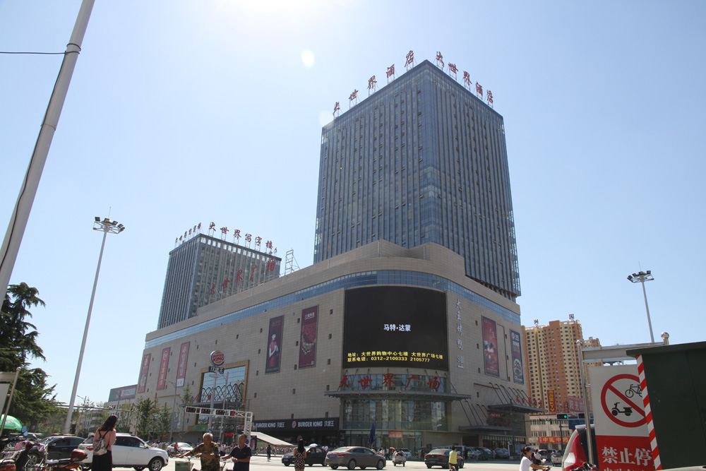定州大世界購物中心商業城市綜合體工程是集酒店、辦公、商業為一體的綜合性地標建筑。地上酒店二十一層、辦公樓十五層,裙樓購物中心八層,地下三層,建筑高度99.95m,結構形式為框架結構,高層部分為框剪結構。