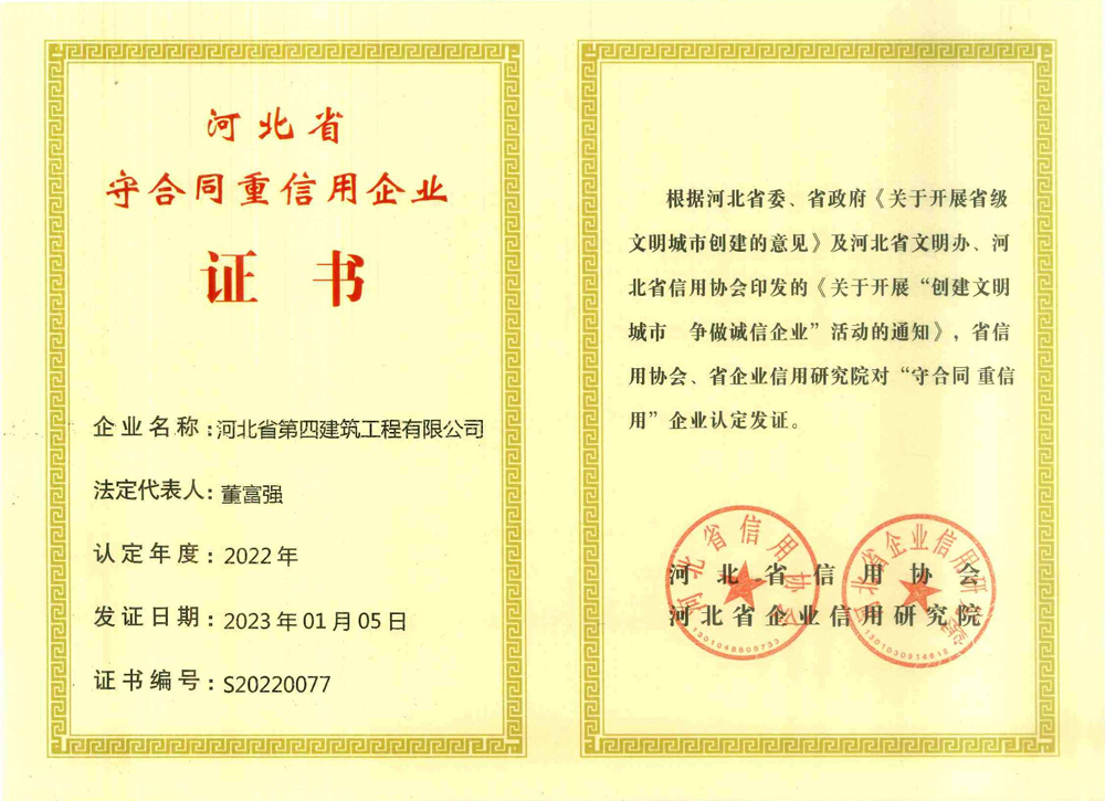 2022年度河北省守合同重信用企業(yè)