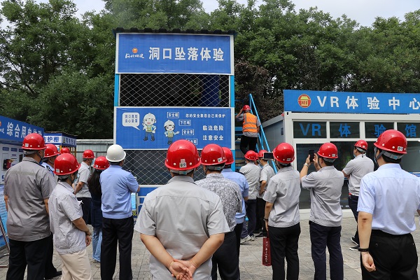 隨后,參加活動的黨員在項目黨支部書記的引領下來到河北四建煙廠項目現場,首先映入眼簾的是排列整齊的工程概況、安全分級管控等十二牌六圖。“紅、黃、蘭、綠四種顏色清楚的區分了現場安全風險點……。”大家一邊認真地聽著講解一邊說。在體驗區,安全帽撞擊體驗、高空墜落體驗等通過講解員生動的解說和真人演示引起了大家濃厚興趣,“誰來體驗一下……?!薄拔襾碓囋嚒睙煆S支部的一個年輕人走上高空墜落的操作室,隨著項目工作人員的號令,墜落艙門迅速打開,年輕人瞬間落在下方的防護墊上,馬上翻滾起來。“感覺怎么樣?沒事吧?!贝蠹亿s緊上去詢問?!皠傁聣嫷乃查g有些恐懼,我們平時還要增強安全意識,發生安全事故后果不堪設想……。”