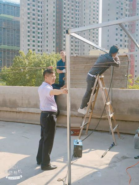 說干就干,立即行動。劉保國和左建華對樓頂平臺實地量測,記錄好尺寸。兩人一邊量著,一邊比劃著,對所需的材料做到心中有數。“采購材料的事兒,就交給我了。”設備材料科科長史永濤拿出電話就開始聯系起來。材料就位后,考慮到有些電焊的活兒需要專業的工人,劉保國趕緊聯系了一名電焊工。大家分工合作,你遞材料、我扶鋼管,你安裝、我綁線,邊干邊聊。30多度的高溫下,大家的額頭上直冒汗,但干勁兒絲毫沒減。防雨棚安裝完畢,新買的洗衣機放置到位,大家松了一口氣。“今天的大工程結束了,趁著這次機會,咱們把宿舍的門窗都檢查一遍。”劉保國說道,抬手擦了擦汗水,便拿起工具向宿舍走去。大家對宿舍的門窗逐一進行檢查,對破洞的紗窗進行了更換,對門上松動的把手進行了維修。