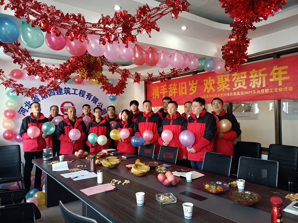 一分公司機關和各項目部分別舉辦了“迎新年、鼓干勁、啟征程”聯歡活動。職工歡聚一堂,在歡聲笑語中共同慶祝元旦佳節。元氏醫院項目部、元氏管網項目部聯合舉辦了迎新年聯歡會,大家分享暖心故事、對詩猜謎語、唱紅歌,在生活區舉行拔河比賽,在喜氣洋洋的氛圍中傳遞著滿滿的正能量。