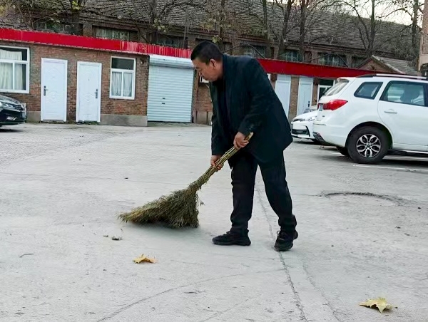 作為兼任分公司院內五家單位的警衛,王亮沒把“守大門”當成簡單的值守,而是用“多走一步、多想一層”的主動,把院區安全與服務做得既扎實又貼心。夜班值守時,他更把“巡查”做成了“安全隱患排查”,仔細檢查門窗、消防器材及車輛停放。有次巡查,他注意到有車輛未關車窗,當即聯系了車主,確保安全。而每天清晨的打掃,更像是他對“家”的細致守護的延伸。每天六點天剛亮,多數同事還沒出門,他已經扛著掃帚、拎著簸箕,在機關前后院忙活開了。落葉飄在花叢里,他就蹲下來一片一片撿;紙屑卡在磚縫里,他用小夾子慢慢夾出來,連墻角的雜草都要順手拔掉。“咱守著這院兒,不僅要保安全,更要讓大伙兒上班看見清亮的環境,心里敞亮。”王亮的話語樸實無華。在他眼里,“警衛”不只是一份工作,更是守護分公司“家”的責任,這份盡責與主動,正是“把院區當自家”最樸素的表達。