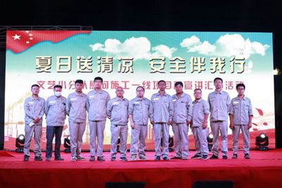 9月7日晚,由河北省直屬機(jī)關(guān)工會(huì)工作委員會(huì)主辦的“夏日送清涼,安全伴我行”慰問施工一線職工專場演出在八分公司武安項(xiàng)目部舉行,項(xiàng)目部全體職工與作業(yè)工人共計(jì)二百余人共同觀看了演出。