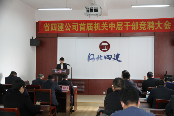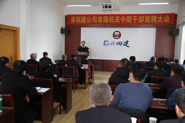 公開競聘選賢才,四建才俊展風采。2021年2月24日,省四建公司首屆機關中層正職崗位競聘會在四樓培訓中心舉行。30人(次)英才跨上講臺,暢談自己對11個中層正職崗位的履職目標和創新舉措,為公司各部門的管理獻計獻策。這是公司成立以來首次機制改革大規模人才選拔考評活動。公司黨委書記董事長董富強發表開賽致辭和總結講話。公司黨委副書記、紀委書記、工會主席李懷生主持競聘大會。