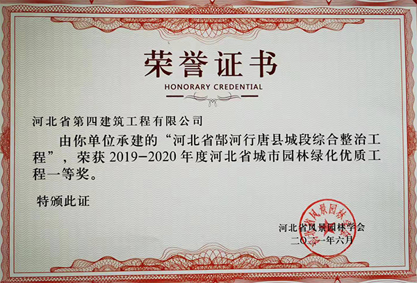10月19日至20日,由河北省風景園林學會主辦的第四屆六次常務理事會、四次理事會暨2020年年會在唐山召開。會上,由八分公司承建的“河北省郜河行唐縣城段綜合整治工程”,被評為2019-2020年度河北省城市園林綠化優質工程一等獎。這是繼榮獲石家莊市興石杯(市優)工程獎之后,該項目獲得的又一獎項,為公司工程榮譽墻再添一抹色彩。