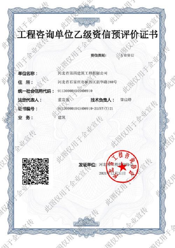 1月6日,設計院喜獲“工程咨詢單位(建筑)乙級資信預評價證書”。設計院將可在本專業內承攬建設項目的工程咨詢業務,新業務的注入為設計院帶來新的活力,標志著設計院在工程咨詢服務領域迎來廣闊的發展空間。