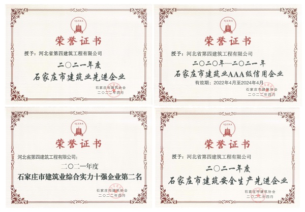 近日,公司在建筑施工領域再獲表彰。經專家組嚴格評審,石家莊市建筑協會研究決定,授予公司2021年度“石家莊市建筑業綜合實力十強企業”“石家莊市建筑業AAA級信用企業”“石家莊市建筑業先進企業”“安全生產先進企業”,四項榮譽在獲獎榜單中均名列前茅。同時,張新煜被評為“優秀企業經理”、梁復被評為“優秀安全總監”、陳增順被評為“優秀總工程師”、李青等22人被評為“優秀項目經理”,聶玉朝等2人被評為“安全生產先進工作者”。