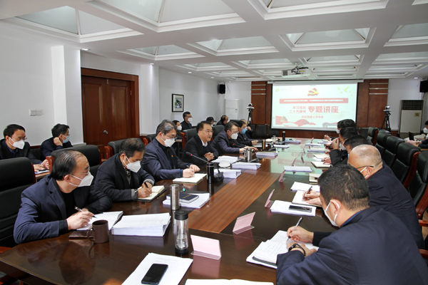 窗外寒風陣陣,室內暖意融融。2023年1月6日,公司領導班子成員、各部室負責人、各分公司主要負責人齊聚公司三樓會議室,聆聽公司黨委書記、董事長董富強作學習黨的二十大精神專題講座。