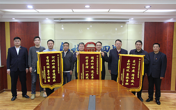 4月27日下午,石家莊市職教園區業主、甲方及監理代表專程來到公司贈送錦旗,由衷感謝公司優質高效完成施工任務。公司黨委書記、董事長董富強,總經理唐志強、副總經理劉金河、九分公司經理劉喜良等一同接待。