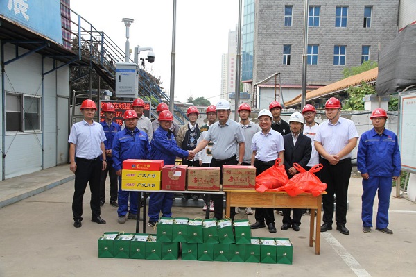 來到項目辦公區,公司領導將牛奶、月餅、豬肉等慰問品一一送到施工人員手中,對節日期間仍然堅守崗位的施工人員致以節日的慰問和衷心的祝福,感謝大家為公司發展做出的貢獻,同時叮囑項目部要關心關愛職工,為職工辦實事、辦好事,讓大家吃得放心、住得舒心,不斷增強獲得感、幸福感和安全感。