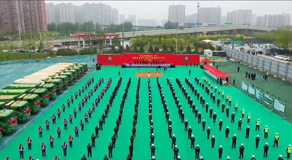活動現場彩旗飛揚、氣氛熱烈,大型機械設備整齊排列,建設工人整裝待發。儀式在歡快激昂的樂曲聲中拉開序幕,石家莊水投集團黨委副書記、總經理盧金河首先介紹項目概況及其重大作用意義,市國資委黨委書記、主任劉國勤及市城管局二級調研員程利輝先后致辭。公司黨委書記、董事長董富強在發言時強調,作為工程總承包特級資質企業,河北四建決心把各級各界領導的信心,化作優質、高效、安全、綠色施工的強大動力,組建精干高效的項目班子,科學配置資源,精心組織施工,堅決遵守建設工程管理法律法規,認真落實公司“營造時代精品建筑、構建和諧安康環境”的管理方針,講誠信重履約、高起點高標準推進工程建設,持之以恒抓質量、保進度,全力以赴筑精品、樹樣板,向社會各界交上一份滿意答卷,為石家莊市高質量發展貢獻河北四建力量!