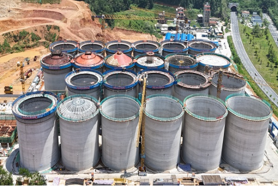 中儲糧(云浮)直屬庫倉儲項目位于廣東省云浮市云城區,合同額1.5億元,包括11個淺圓倉總倉容11萬噸,2個平房倉總倉容2.5萬噸及提升塔、汽車卸糧站、生產輔助用房等配套設施。(八分公司)