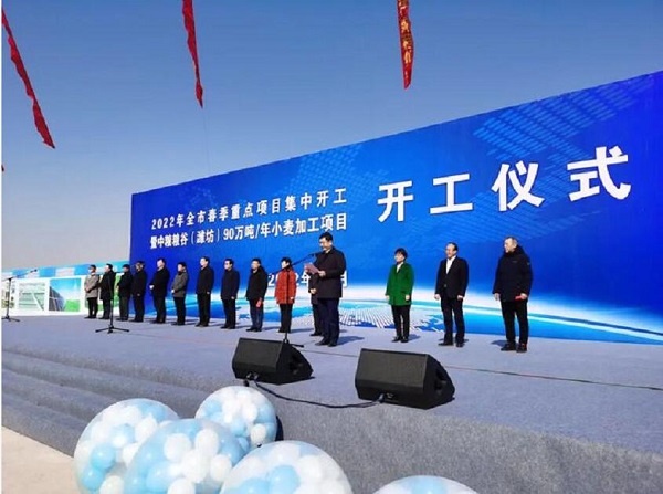 2月22日上午10點,山東省安丘市40個重點項目集中開工儀式在天津分公司承建的中糧糧谷(濰坊)90萬噸/年小麥加工項目現場舉行。安丘市委書記賈勤清、興安街道黨工委書記李義周、中糧糧谷(濰坊)有限公司董事長潘多玉以及市直屬單位和施工單位等參加。