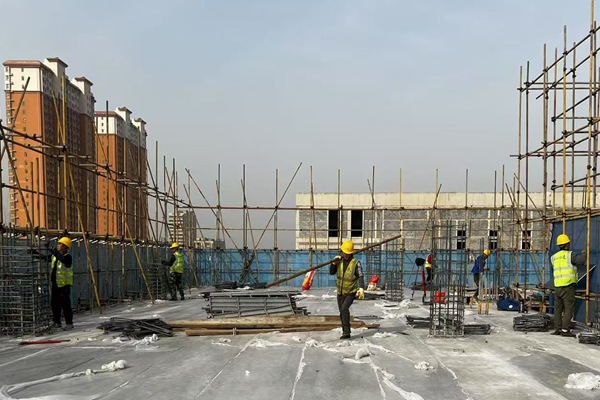 春日天氣漸暖,正是施工項目大干快干的黃金期。項目部搶抓有利時機,吹響“沖鋒號”,奮力沖刺首季目標任務。壓實工作責任,緊盯時間節點,全面梳理節點目標、精準倒排工期,優化施工組織方案,增加鋼筋綁扎、模板支設等作業人員共計20余人,分工協作,全速推進項目進度。目前綜合教學樓已封頂,正在進行餐廳及多功能廳主體結構施工。