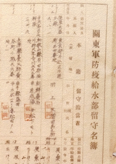 《關東軍防疫給水部留守名簿》(局部)。