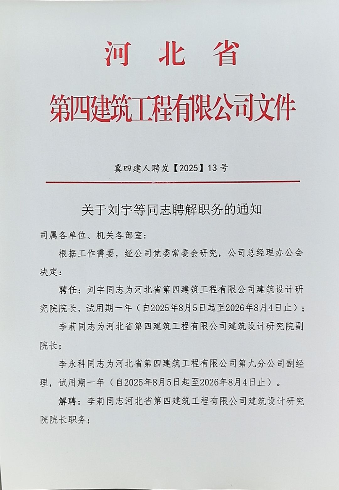 關于劉宇等同志聘解職務的通知